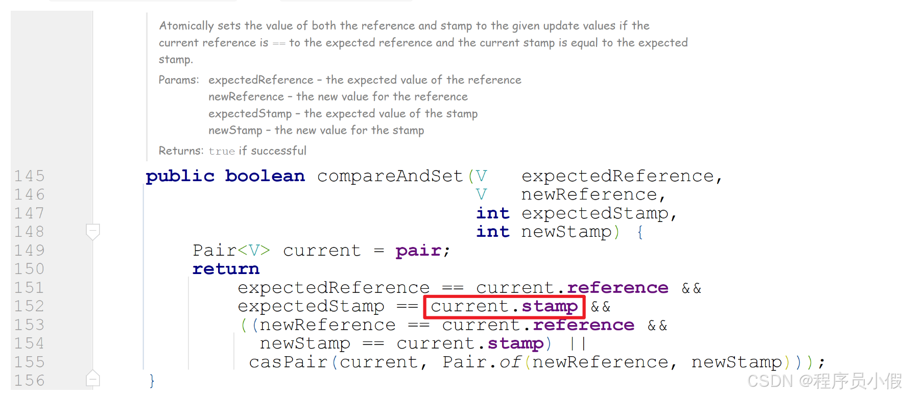 可以看到AtomicStampedReference里的compareAndSet()中多了 一个stamp比较(也就是版本),这个值是由每次更新时来维护的。
