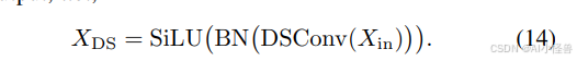 DSConv(深度可分离卷积)模块首先应用标准的深度可分离卷积层来提取特征,然后利用批量归一化和 SiLU 激活函数来获得输出,即: