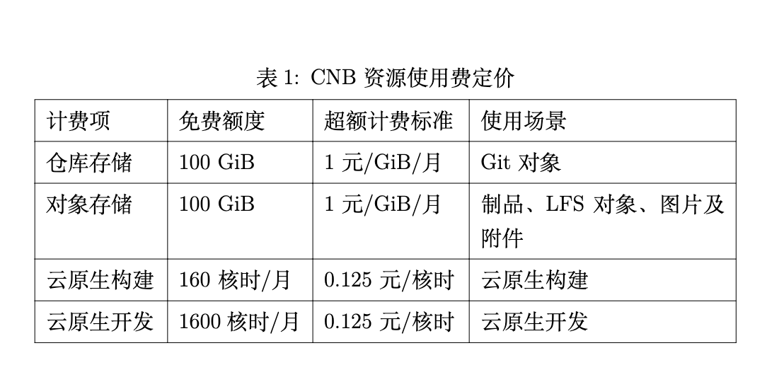 云原生构建 & 160 核时/月 & 0.125 元/核时 & 云原生构建\\