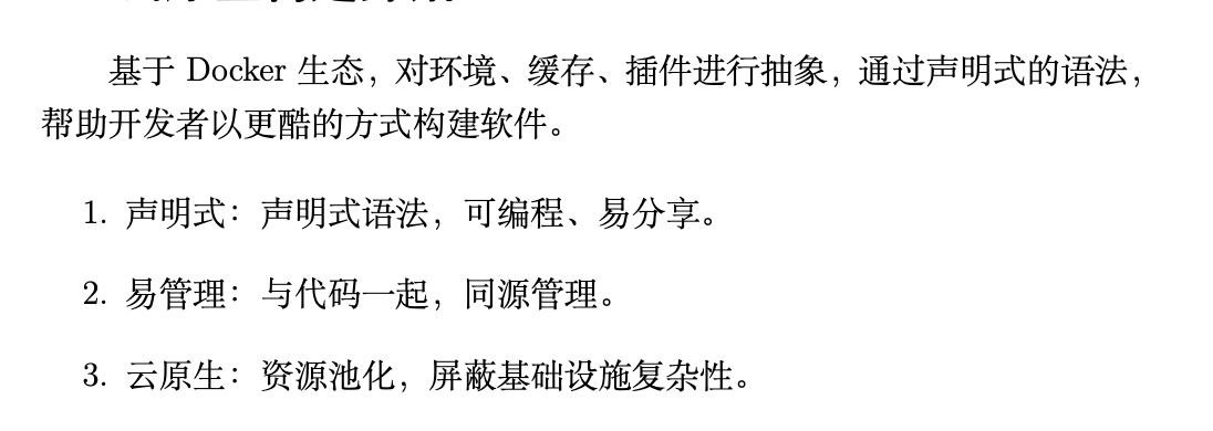 基于 Docker 生态,对环境、缓存、插件进行抽象,通过声明式的语法,帮助开发者以更酷的方式构建软件。