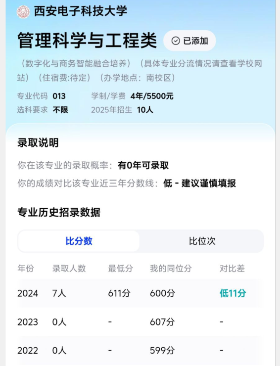 除了学校和专业,还特别贴心地列了一堆实用信息,像学制多久、学费多少,去年最低录取分数、最低排名、招多少人这些全都有。连你在全省的排名、每个学校专业的录取几率都给你算出来了。这服务专业得,跟专门花钱请专家咨询有啥区别啊?