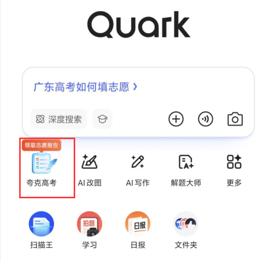 打开夸克APP,可以直接在首页就可以看到“夸克高考”这个功能