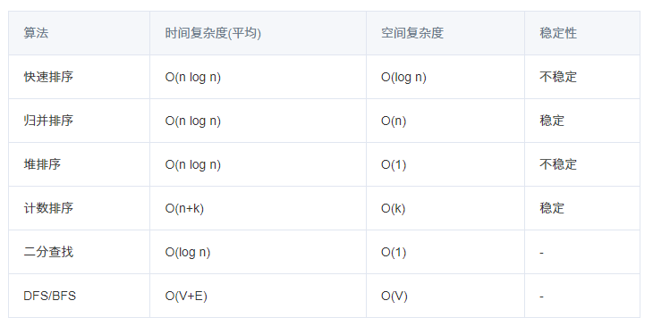 在实际项目中,我们常常需要在时间和空间之间做出权衡。以下是一些常见算法的复杂度对比: