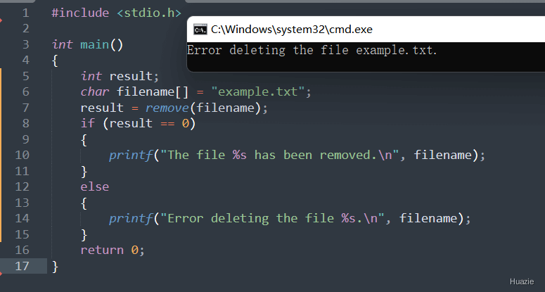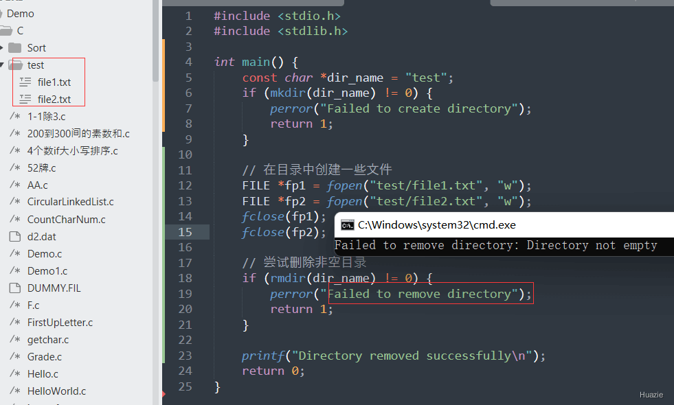 函数尝试删除该目录,但会失败,因为该目录不是空的。注意: 如果要删除非空目录,可以使用上面的 remove()