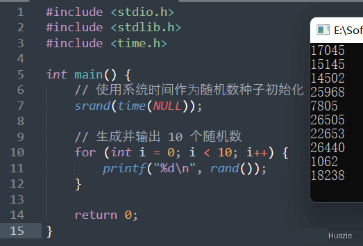 函数返回的随机数序列都是相同的。如果要生成不同的随机数序列,可以使用 srand()