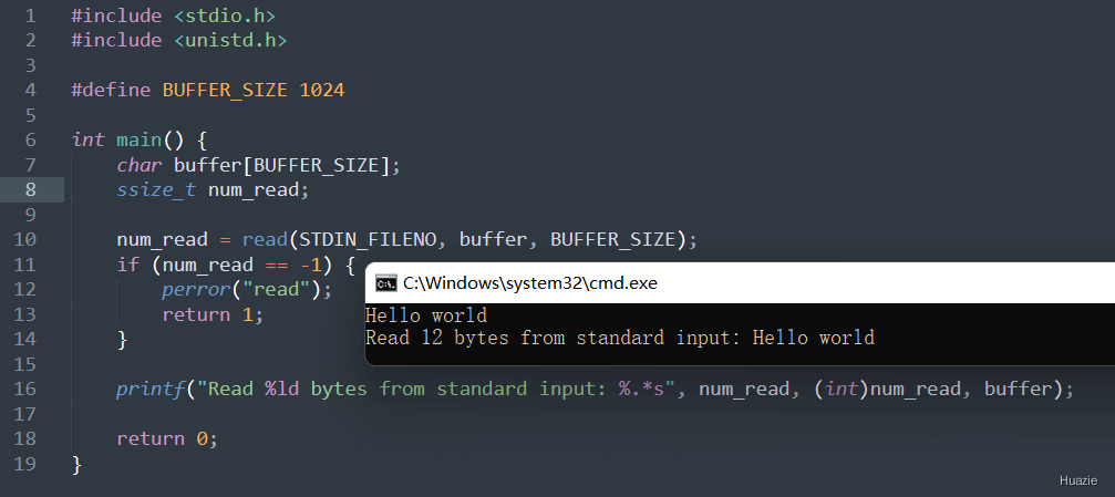 num_read = read(STDIN_FILENO, buffer, BUFFER_SIZE);