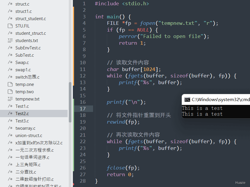 函数将文件指针重置到文件开头,并再次读取文件内容并输出;函数声明 | 函数功能 |