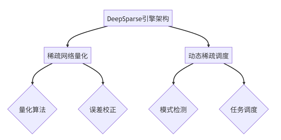 - 量化算法选择 :DeepSparse 引擎支持多种量化算法,将神经网络权值和激活值从 32 位浮点数量化为低位宽(如 8 位或 16 位)定点数。常见的量化方法包括均值 - 标准差量化、最小 - 最大量化等,每种方法适用于不同网络结构和任务需求。
