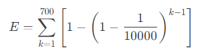 m为总范围,即10000,然后线性期望相加得到重复的数字数量为: