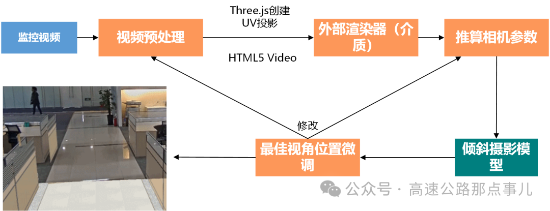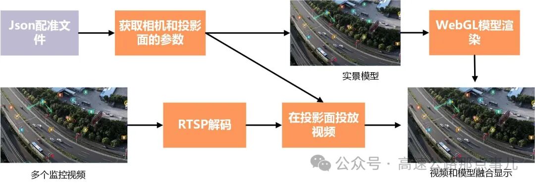 平台中视频与实景三维模型融合技术需要经过后台视频配准和前端视频融合显示两个流程得以实现。
