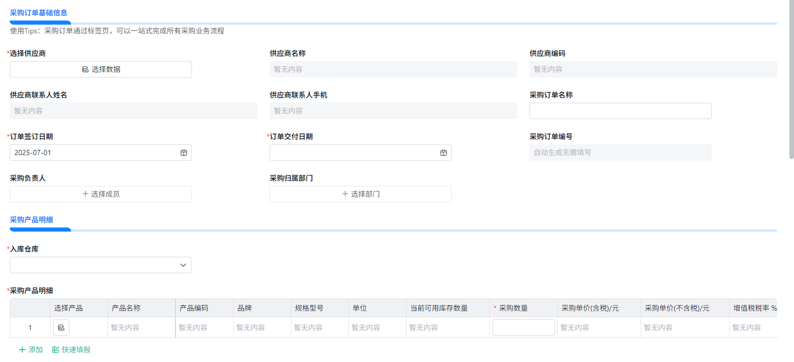 采购管理模块不仅是进销存系统的一个基础功能,也是确保物料及时供应、减少库存浪费、优化采购成本的关键。通过数字化管理,企业能够: