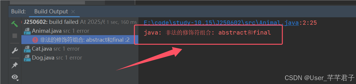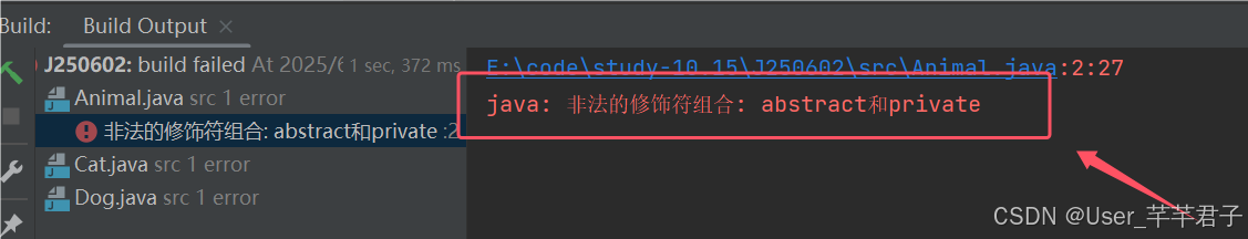 abstract private void eat();//抽象方法:被abstract修饰,没有方法体