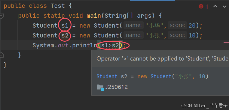 这样进行比较会报错,因为没有指定根据分数还是什么来比较,这样不太灵活,我们可以使用接口,如下: