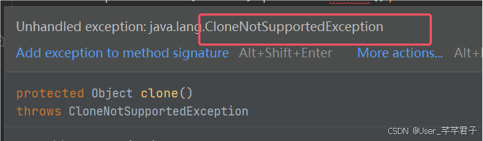 ⽅法,必须要先实现Clonable接⼝,否则就会抛出CloneNotSupportedException