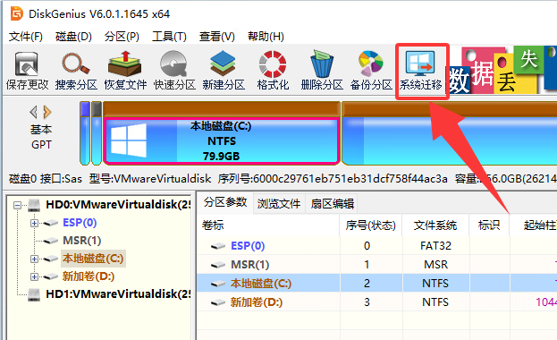 下面是以DiskGenius为例,演示迁移系统的全过程: