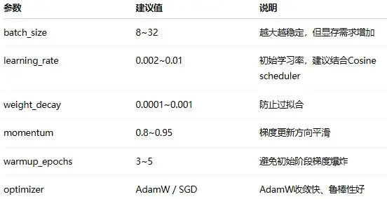 训练超参数对模型性能影响巨大。合理的超参数组合可显著提升模型收敛速度、稳定性和泛化能力。