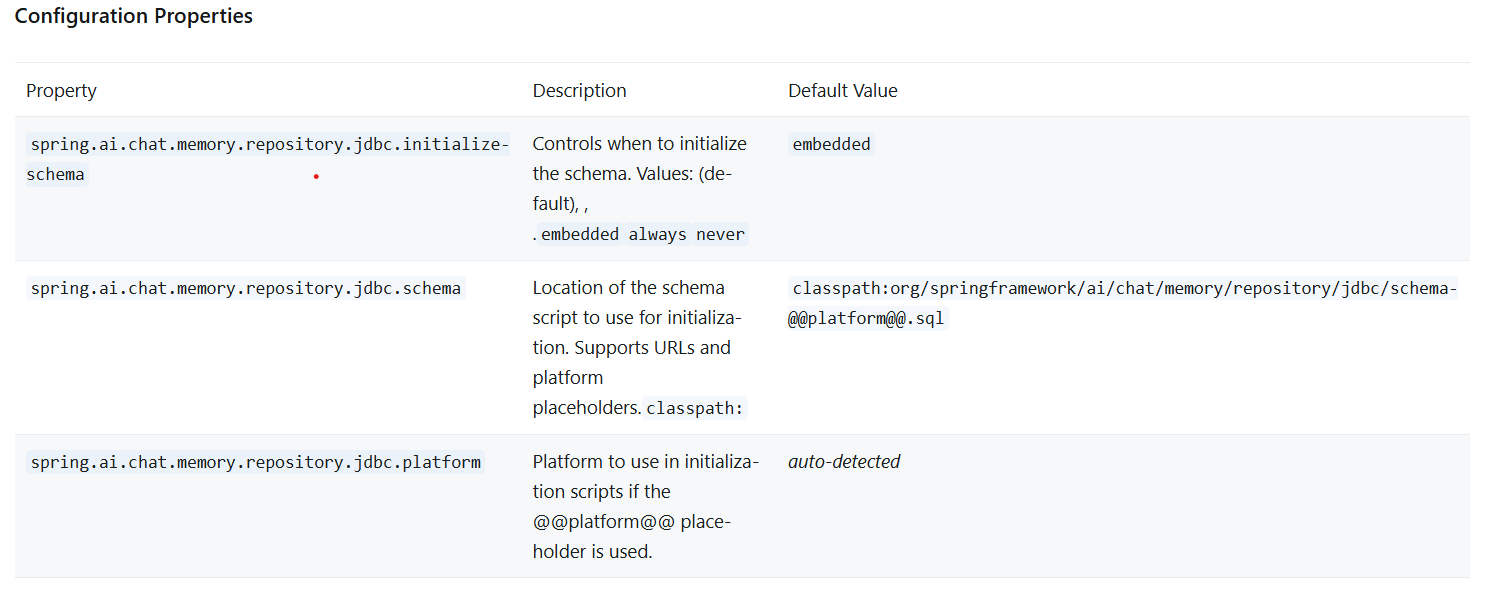 可是实际操作中spring.ai.chat.memory.repository.jdbc.initialize-schema的值要写布尔类型 不能写embedded always never