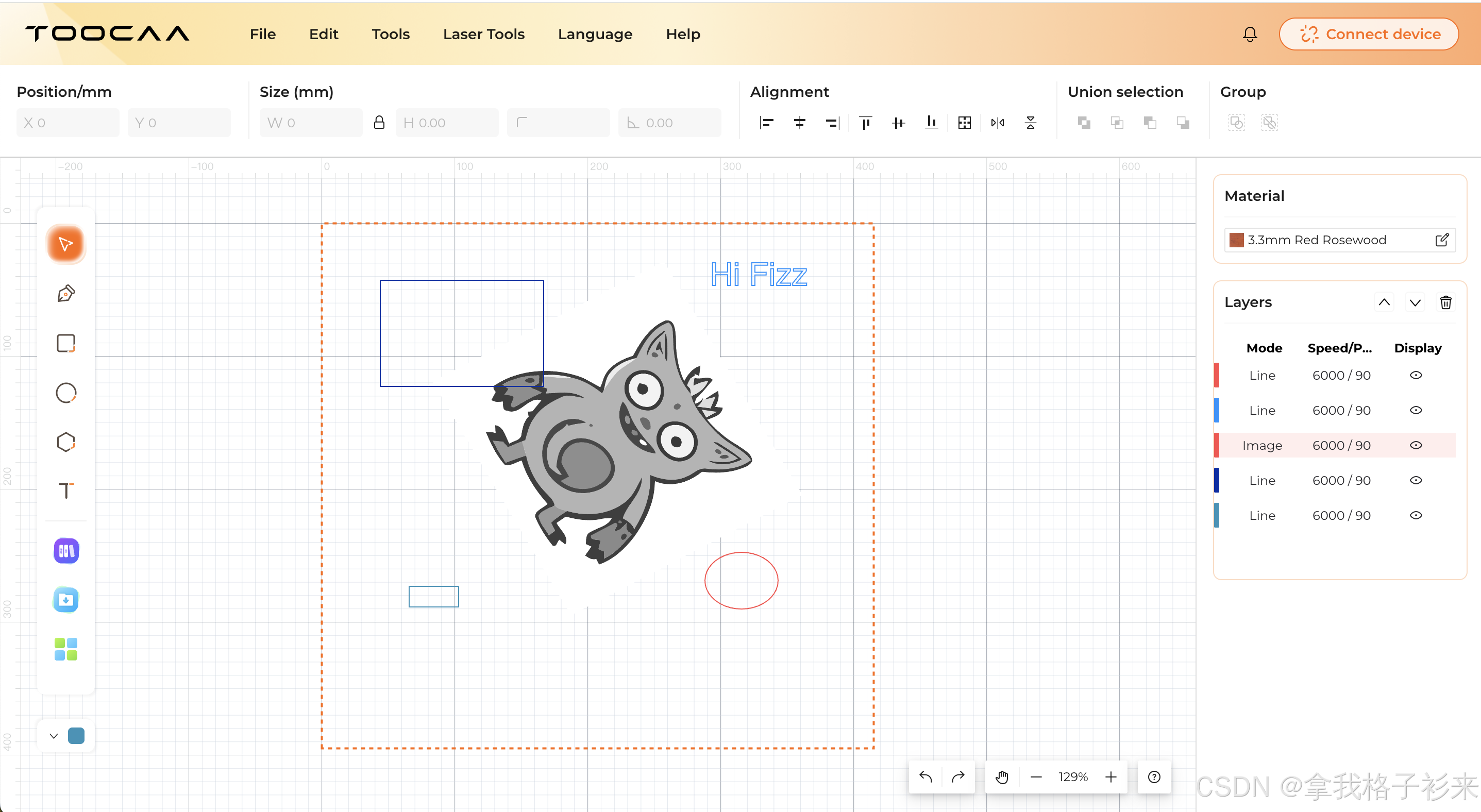 ]type属性表明是否打开激光,true表明是雕刻,false表明是空走。 x,y是坐标,没有设置线条的速度。
