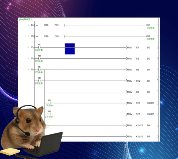 以下是读取变频器频率的程序,当前运行频率是H3310。
