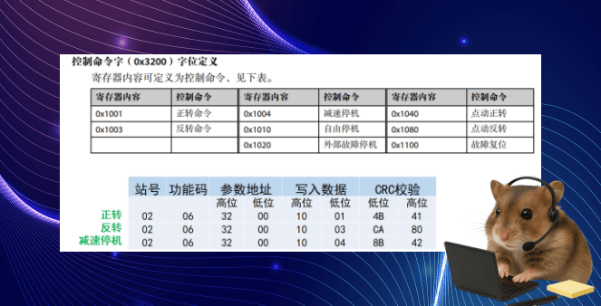 以下是频率写入的控制,这款变频器频率控制的地址是H3201(0X和H都表示16进制)