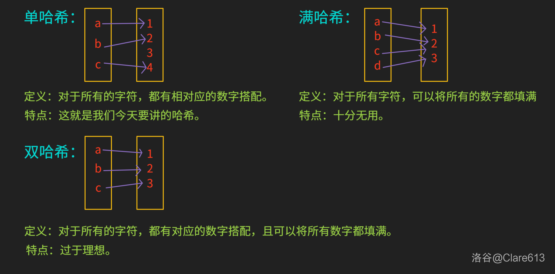 这是我们三种哈希,很明显,只有单哈希是切实可行的。当然,后面会提到“双哈希”,但不是现在写的双哈希。\