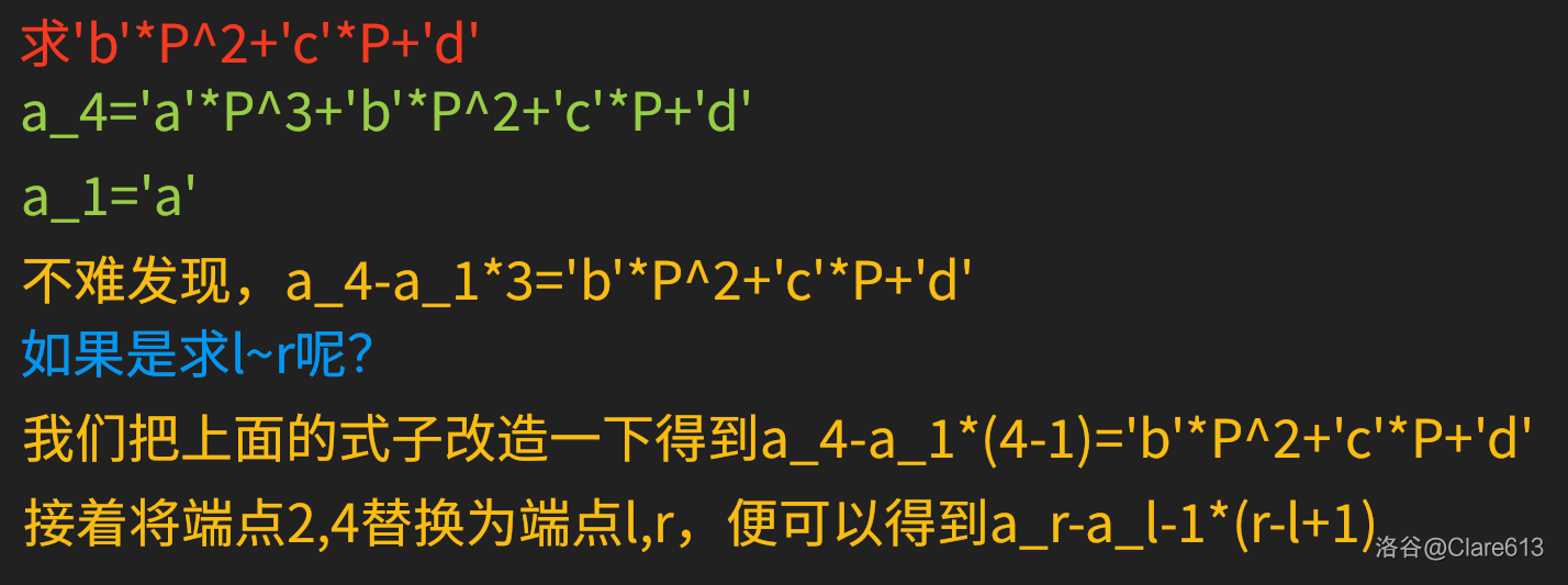 return a[id][r]-a[id][l-1]*pw[r-l+1];