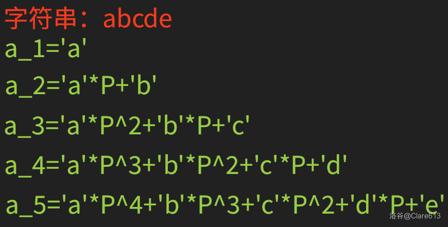 }以上为二进制转十进制,我们现在是字符串转 P 进制,但道理是一样的,如下: