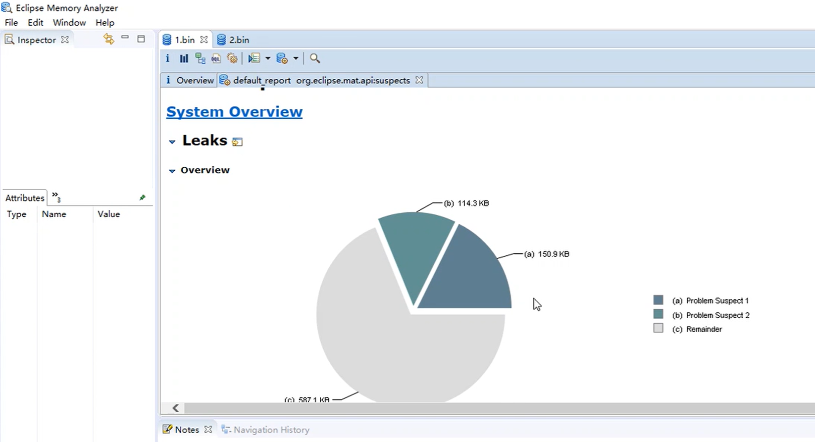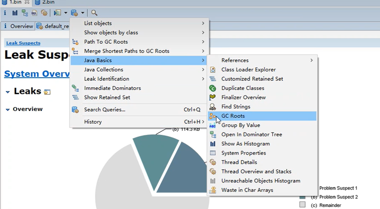 通过eclipse中MAT工具打开转储的两个文件。