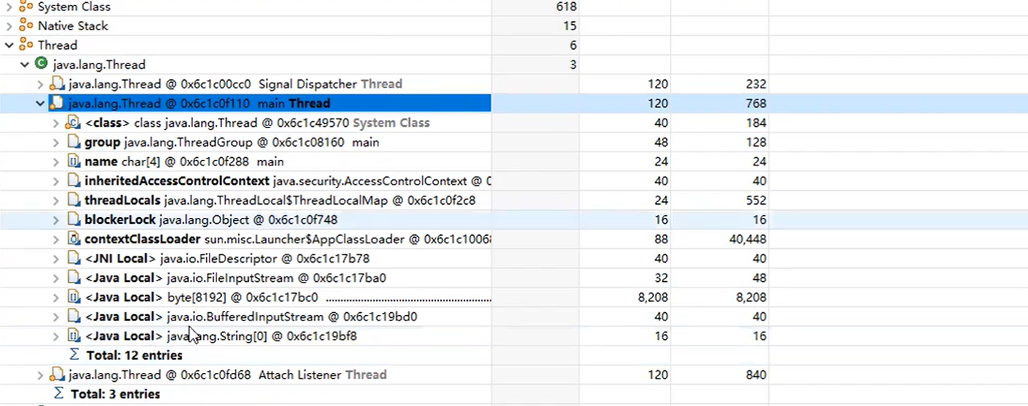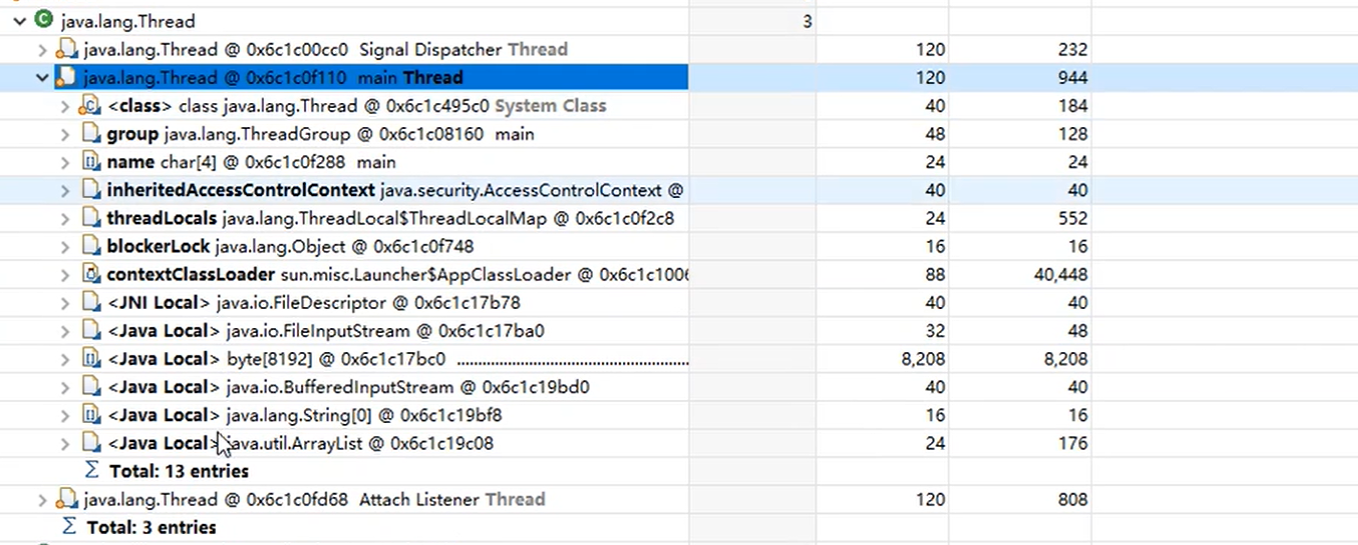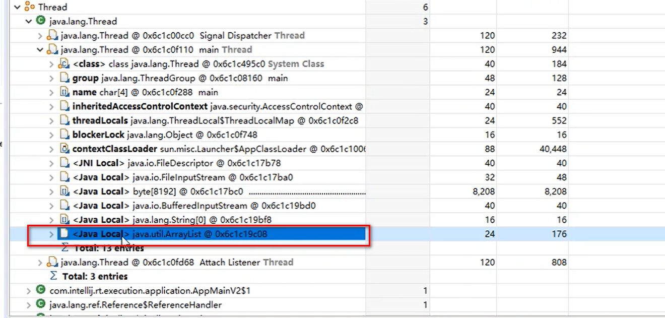 可以看到。下面框出来的就是我们代码中的ArrayList对象。他就是一个GCRoot。