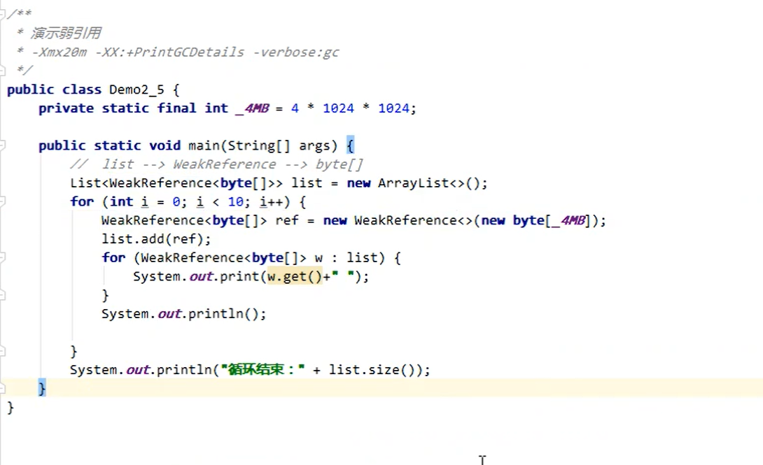 和软引用使用特别类似。这里不用太浪费时间赘述。看看栗子。