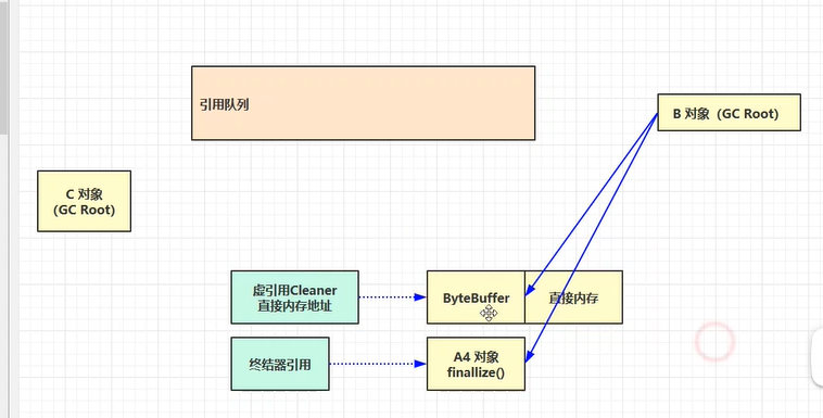 在讲直接内存时,我们说过,创建ByteBuffer时,会创建一个名为Cleaner的虚引用对象。并注册到ReferenceQueue