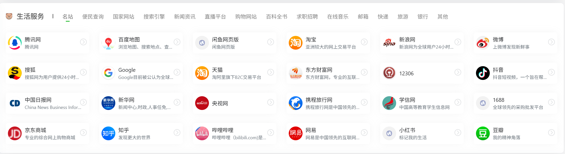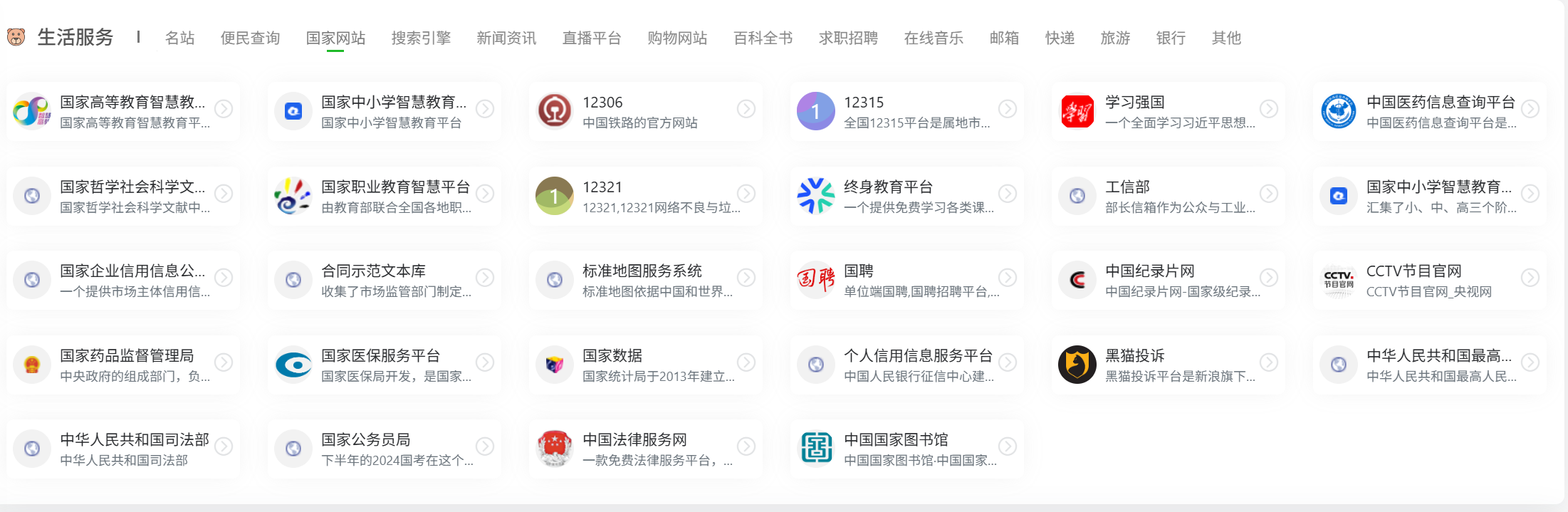 便民查询―搜索引擎―新闻资讯直播平台购物网站―百科全书―求职招聘-在线音乐-邮箱-快递―旅游银行