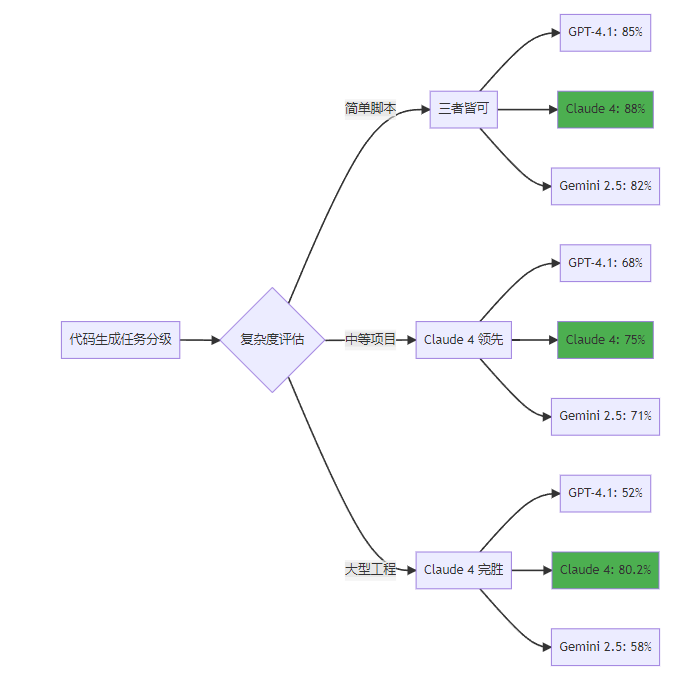 如果说GPT是全能选手,那Claude 4就是"专业选手"——特别是在代码生成方面,简直就是开了挂!SWE-bench(软件工程基准测试)得分高达80.2%,连GitHub都选择它作为Copilot的新基础模型。