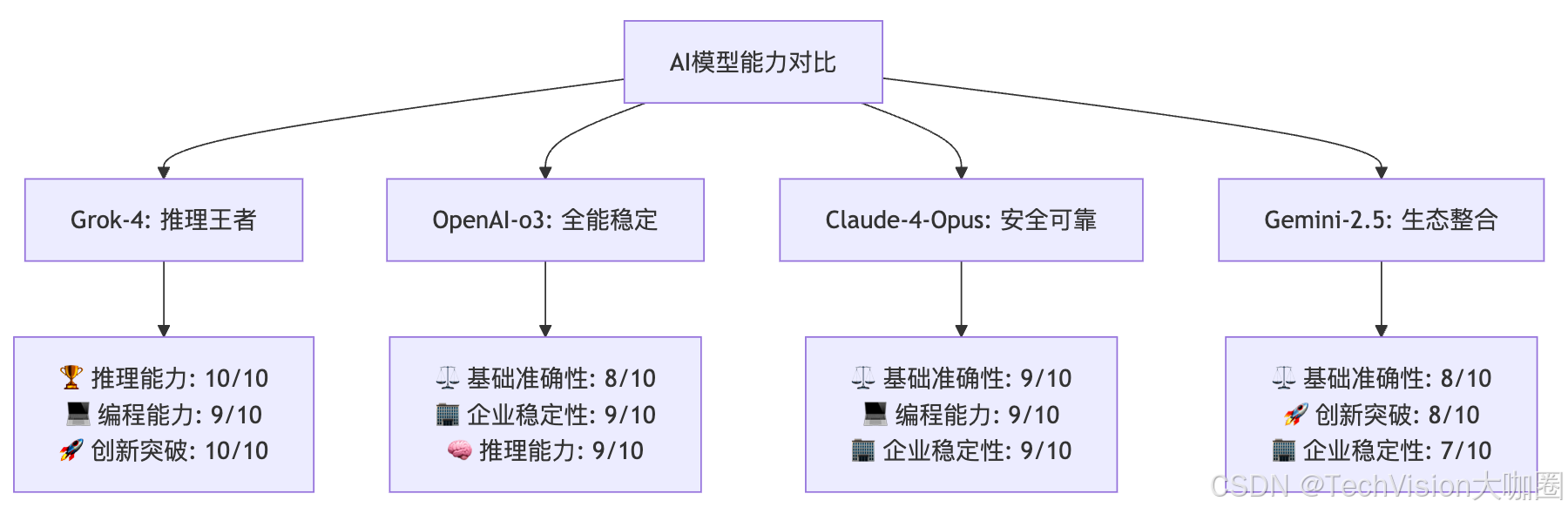 评估维度 | Grok-4 | OpenAI-o3 | Claude-4-Opus | Gemini-2.5 | 说明 |