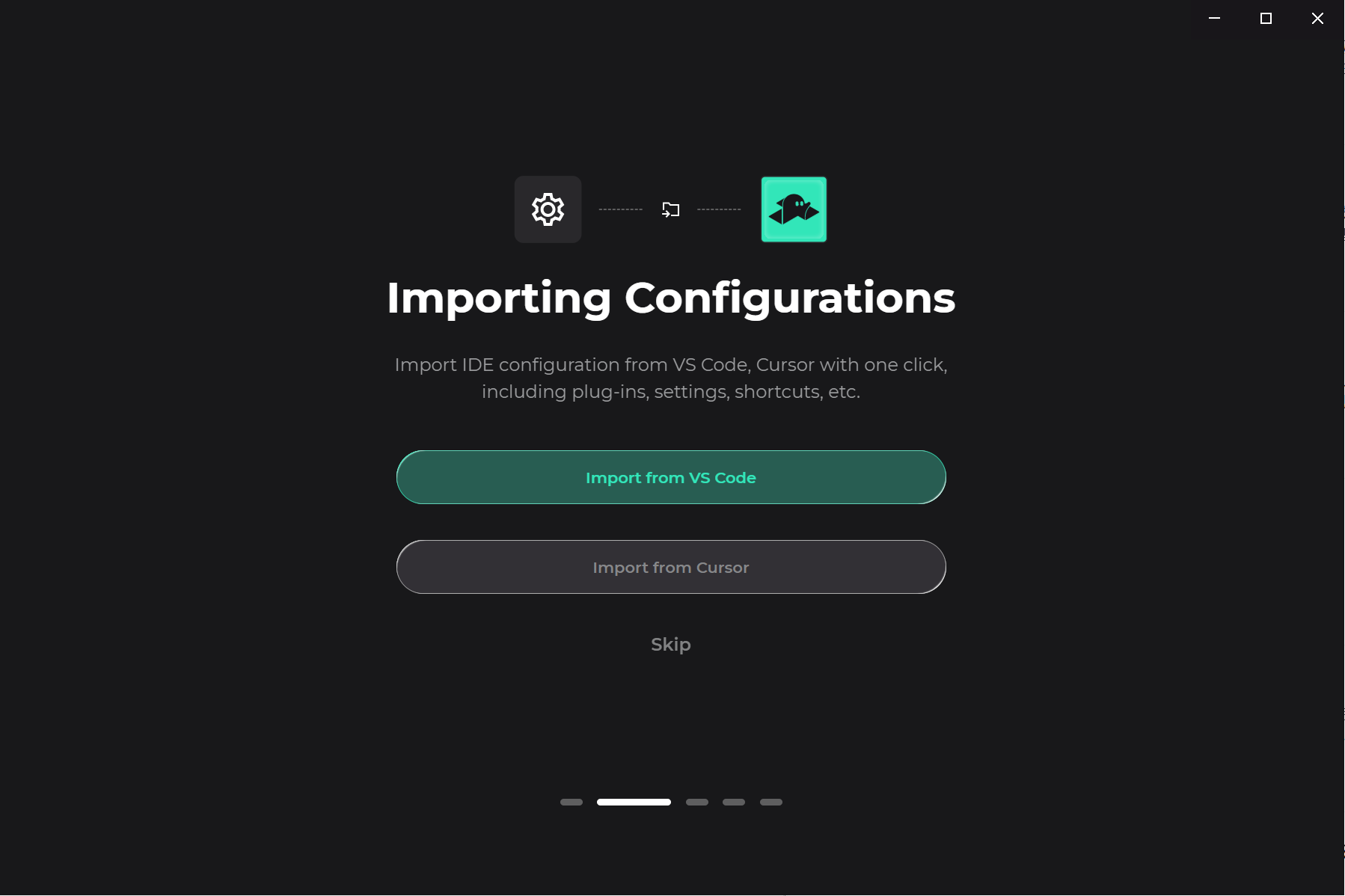 现在,可以选择导入咱们习惯的配置,我日常使用的是VS Code,可以选择从VS Code导入配置,Import from VS Code。
