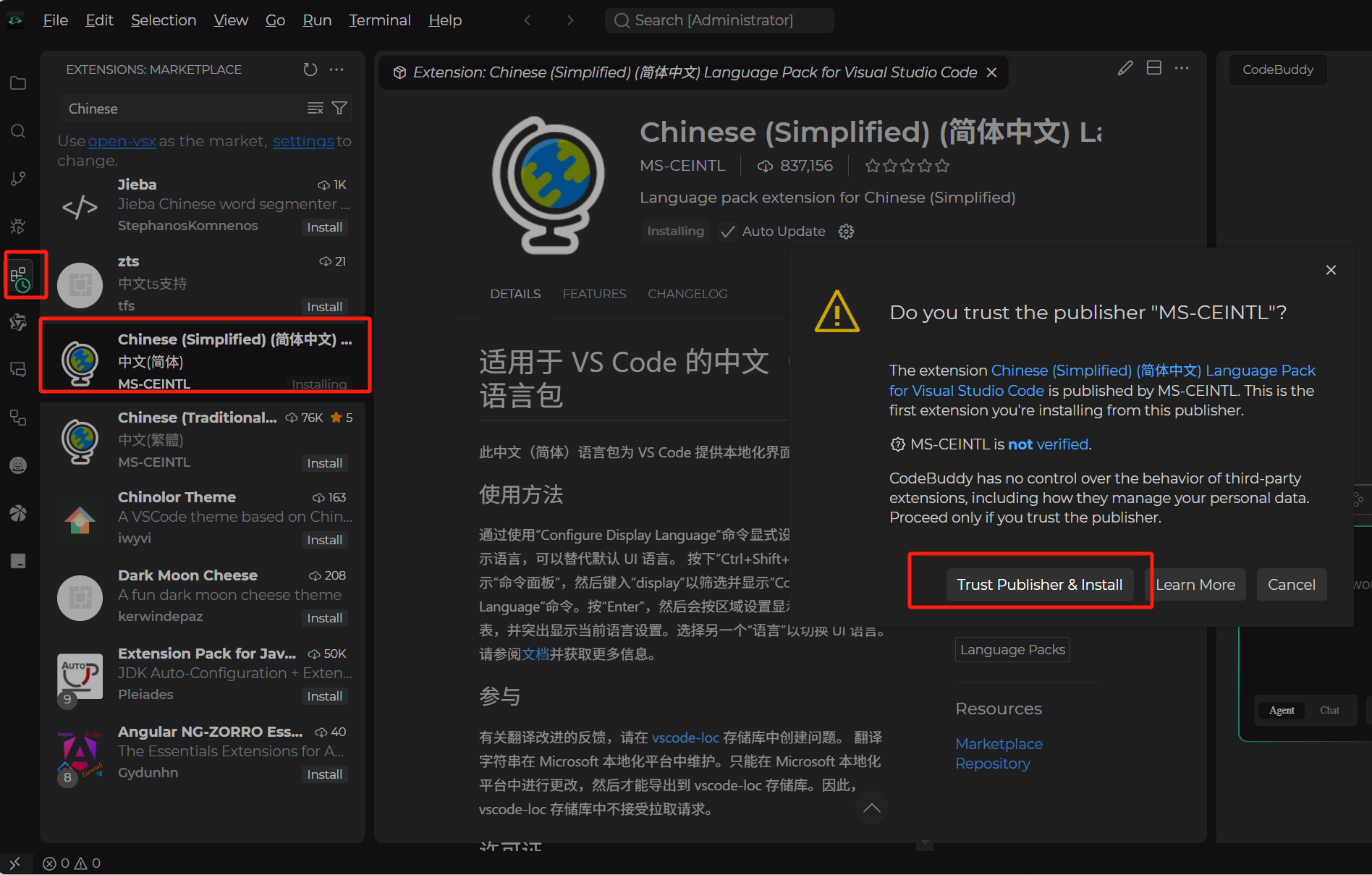 因为全是外语,读起来还是有点费力气的,所以我就去整了一个中文插件打上。