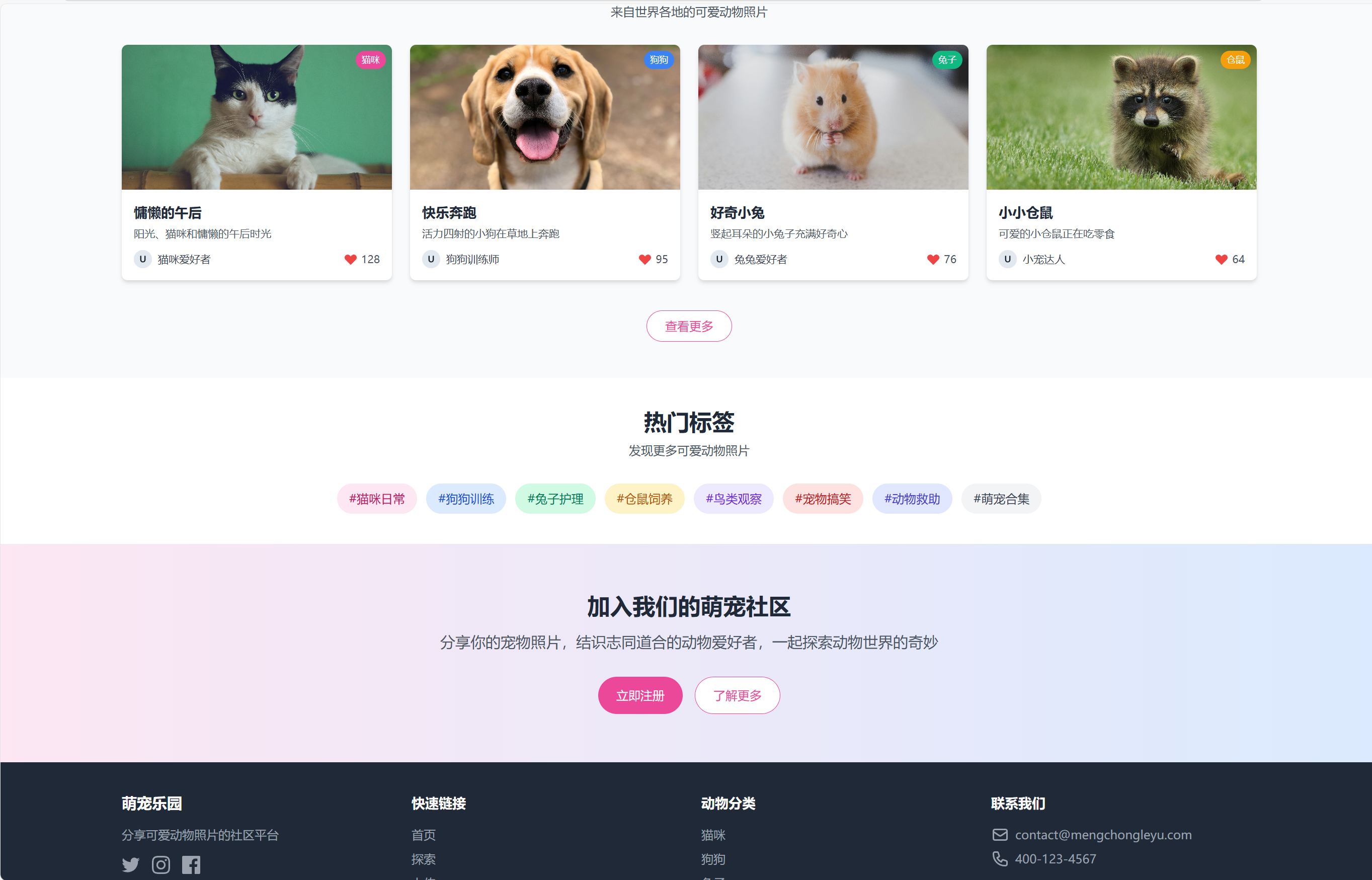 "萌宠乐园"项目是一个设计精美、结构清晰的静态网站,主要特点包括: