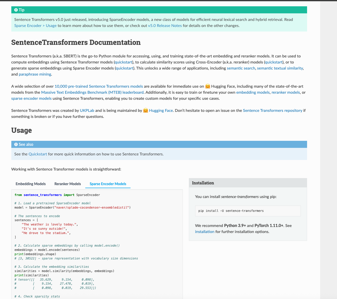 今天看到Sentence Transformers v5.0 集成了许多稀疏嵌入模型。为了搞清楚什么稀疏嵌入模型以及应用,查到了SPLADE,比较巧合的是在paper reading分享的时候看到有同学分享了一片ACL 2025的工作也是基于SPLADE去做的。下面结合一些资料分享关于SPLADE 在稀疏向量搜索中的原理以及应用。