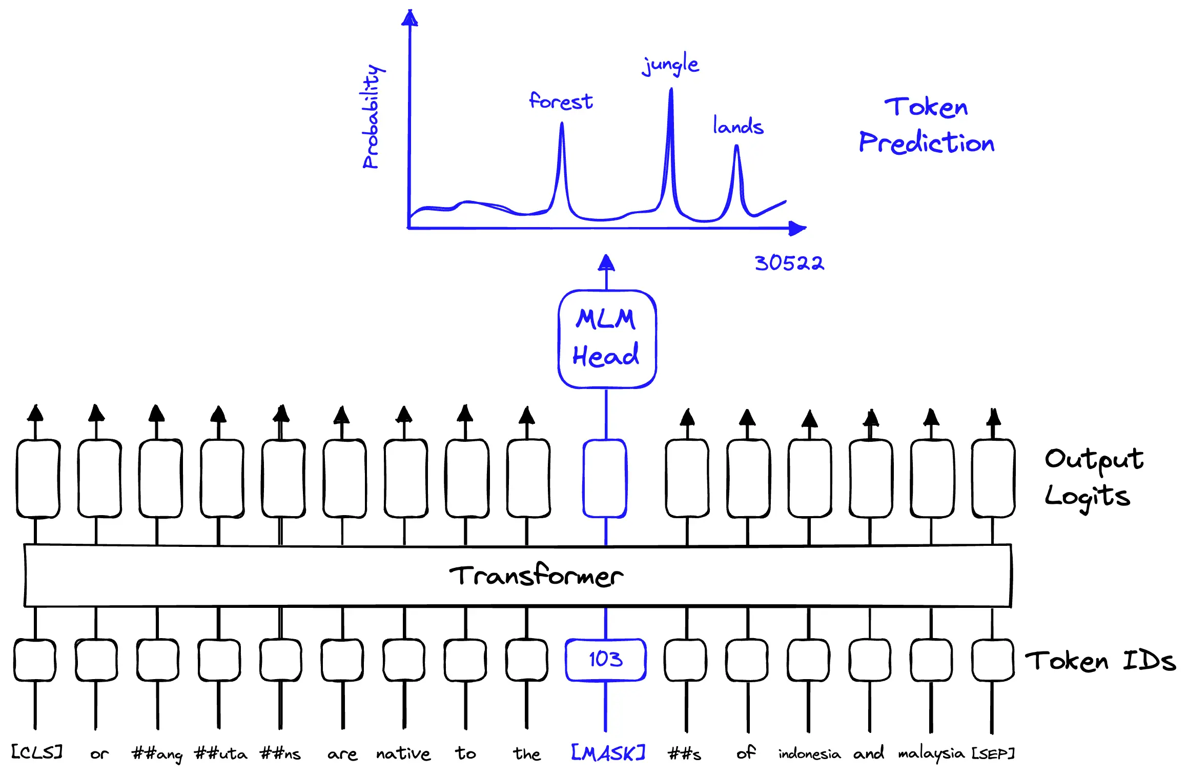 如前所述,我们将使用带有 MLM 头的 BERT 模型。如果您熟悉 BERT 和 MLM,那很好;如果不熟悉,下面我们将进行分解。