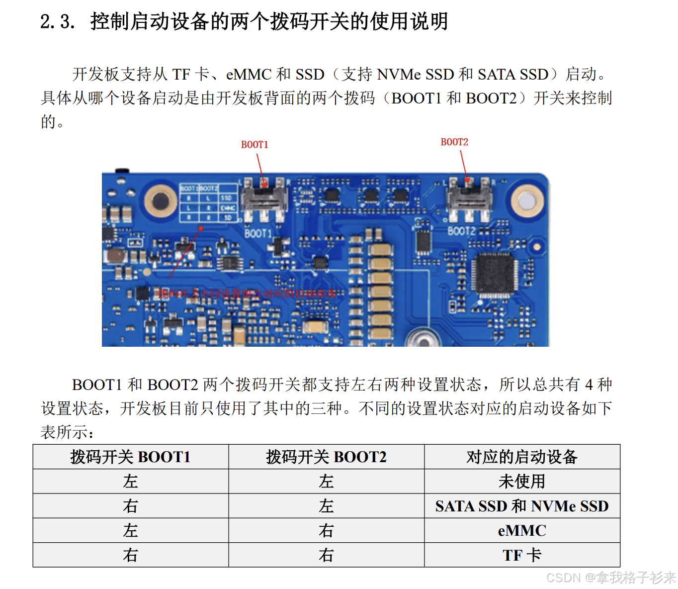 由于开发板的系统是使用TF卡启动,所以开发板背部的boot按钮,应该都拨到右侧。