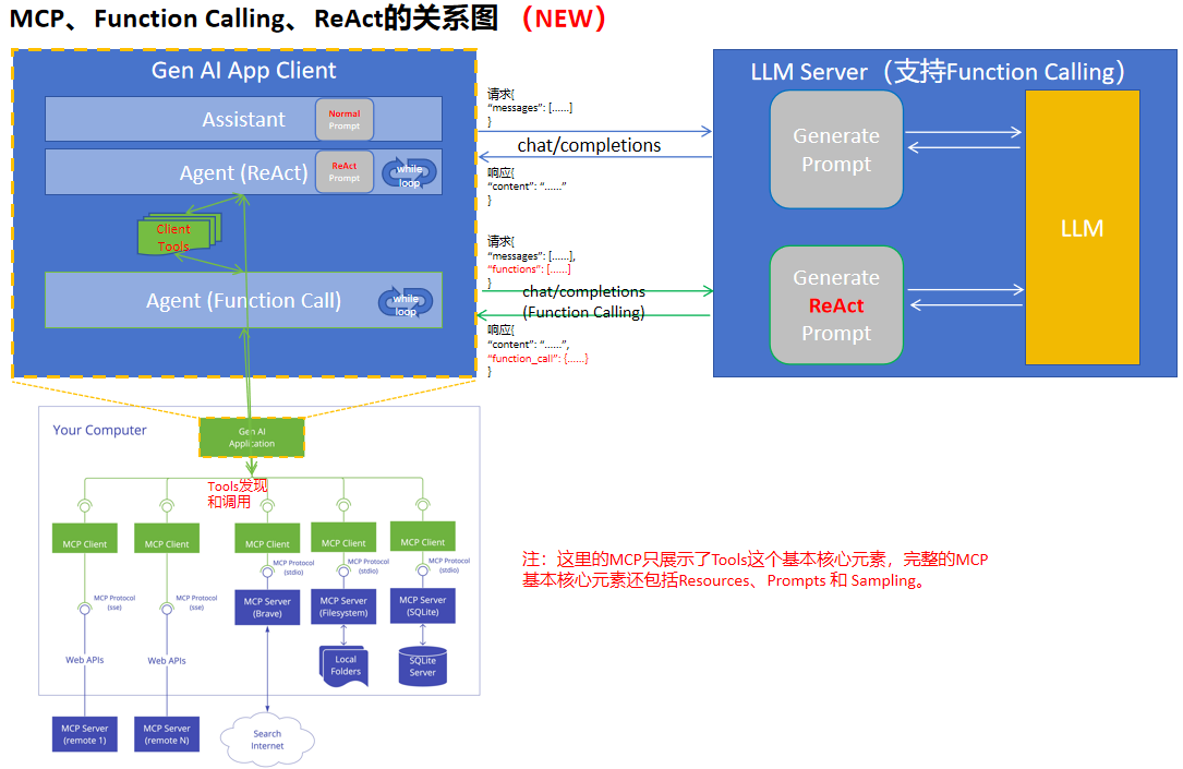 (MCP 协议与 Function Calling相似,MCP最大优点是整合之前各大模型不同的Function Call标准,形成一个统一的标准协议)