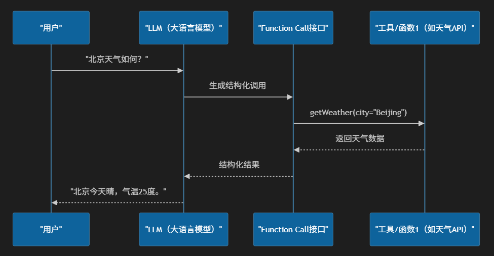 用户问:“北京天气如何?”