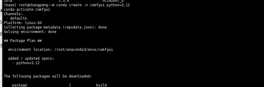 创建python 3.12的comfyui的运行环境,并进入该运行环境: