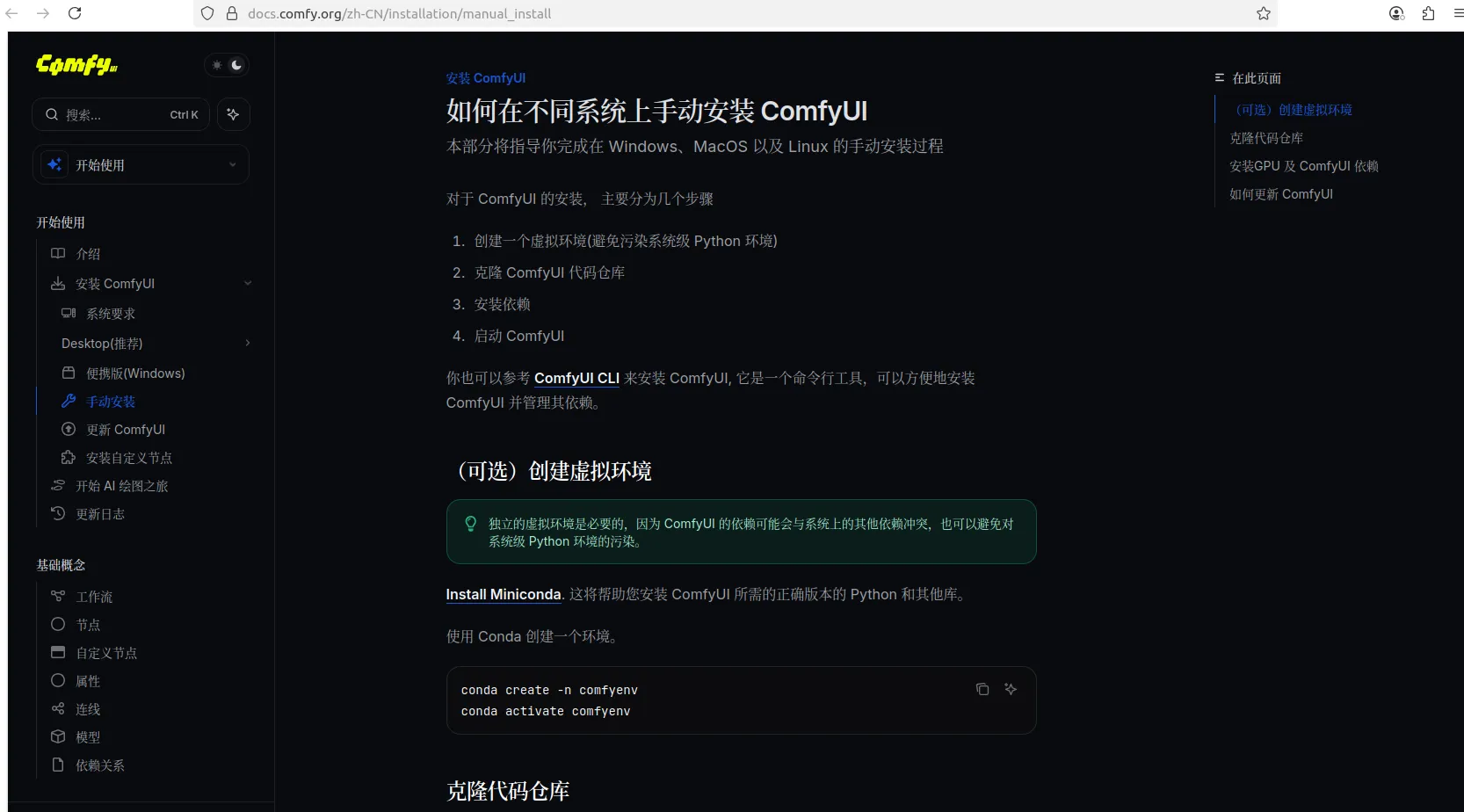 可以参考官方网站:https://docs.comfy.org/zh-CN/installation/manual_install