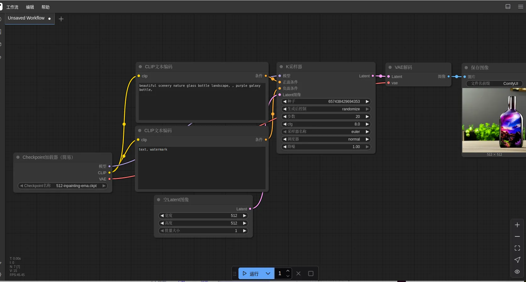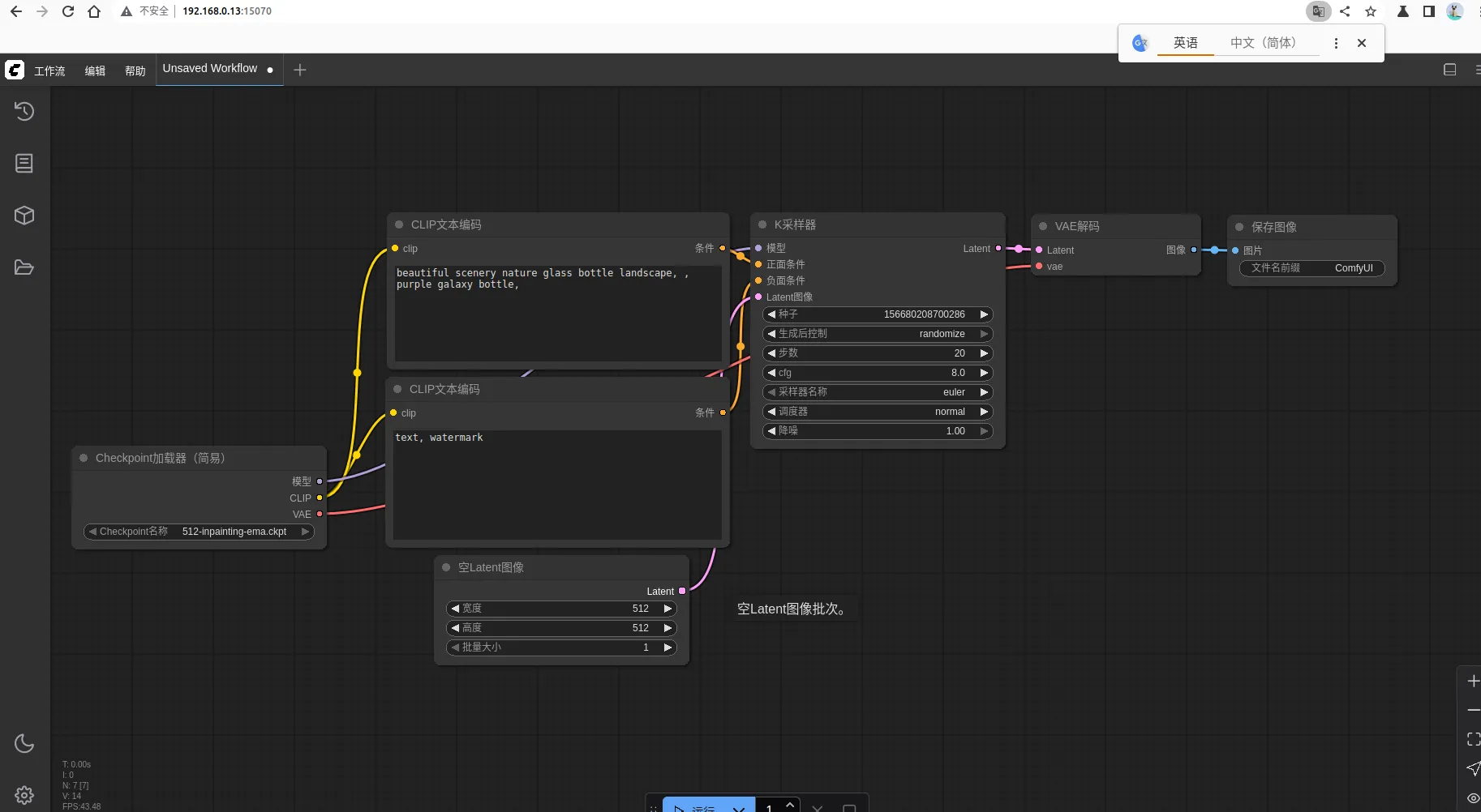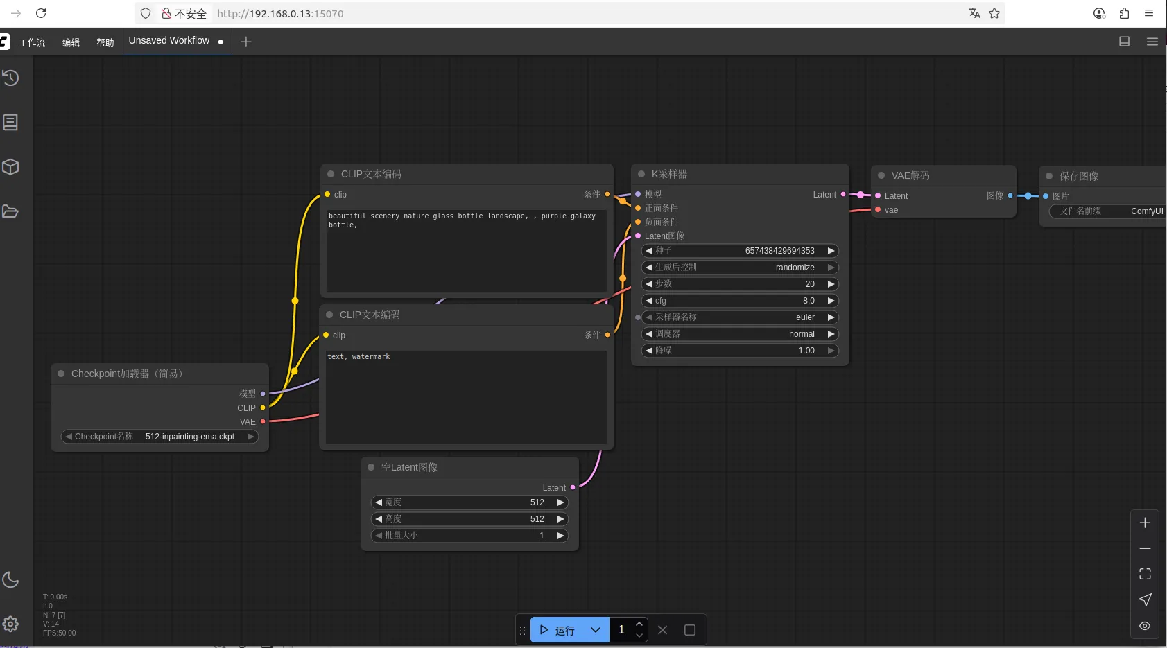 通过浏览器访问安装comfyui应用的VM实例主机的15070端口,可以看到如下页面:
