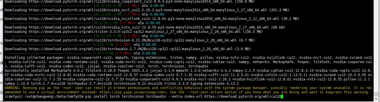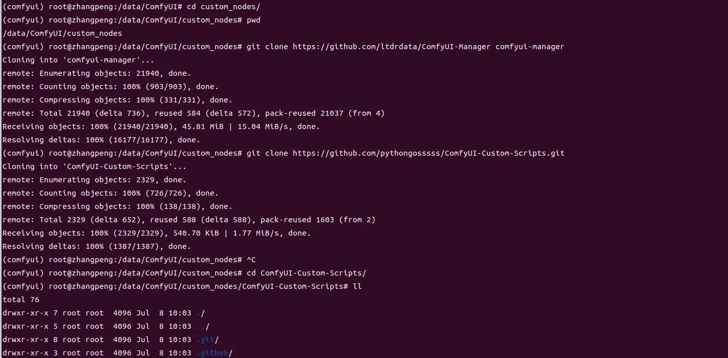 注意:执行命令的目录,必须是comfyui 的相对路径下,如我的目录绝对路径是/data/ComfyUI!