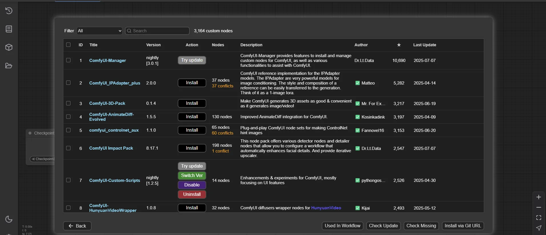 点击Costom Nodes manager 可以搜索下载插件,其他英文名词可以自行翻译: