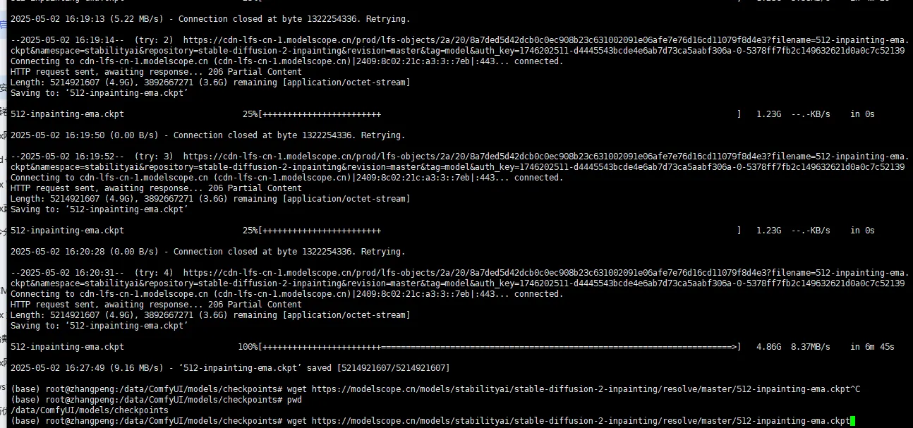 wget https://www.modelscope.cn/models/stabilityai/stable-diffusion-2-inpainting/resolve/master/512-inpainting-ema.ckpt