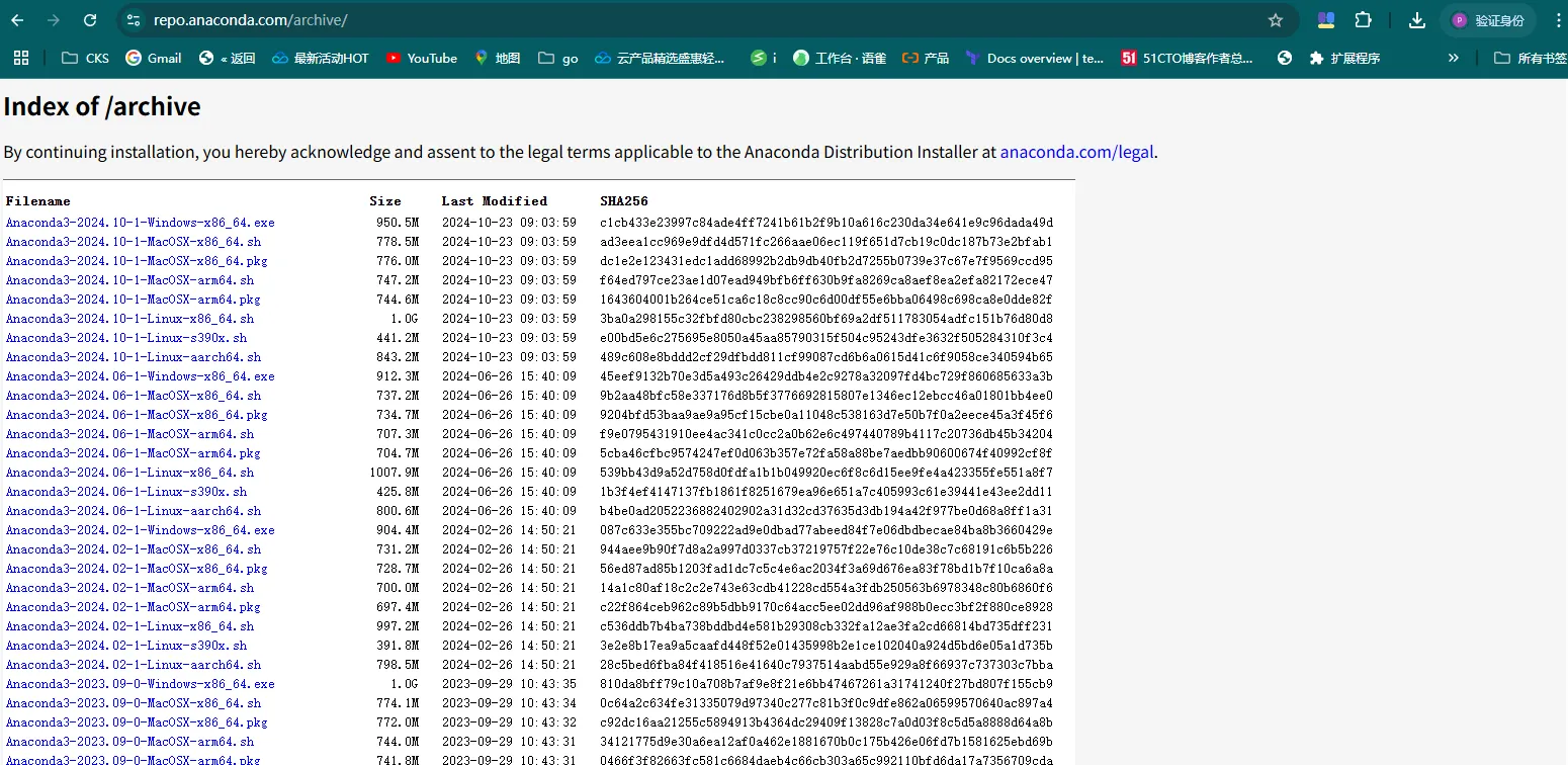 通过访问:https://repo.anaconda.com/archive/ 选择对应安装程序: