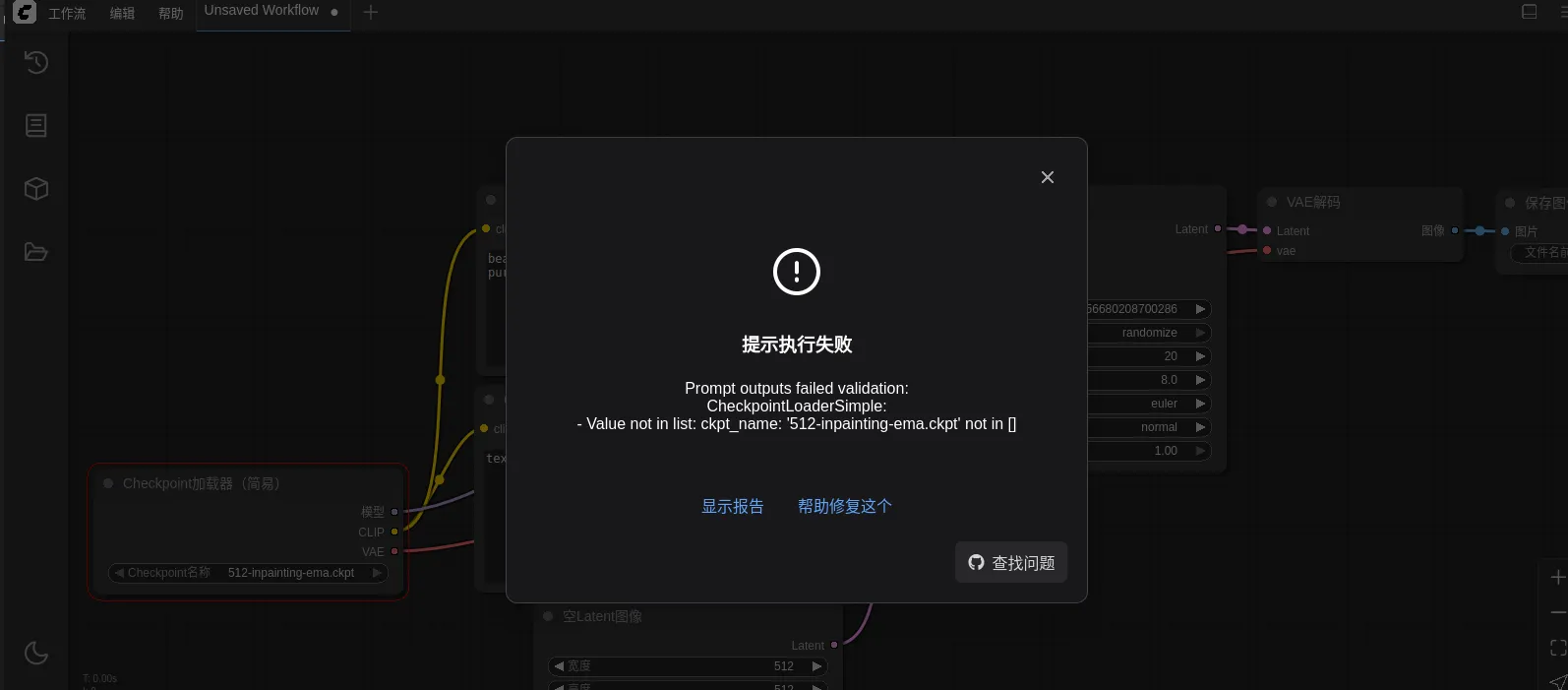运行默认的工作流,会报如下错误: